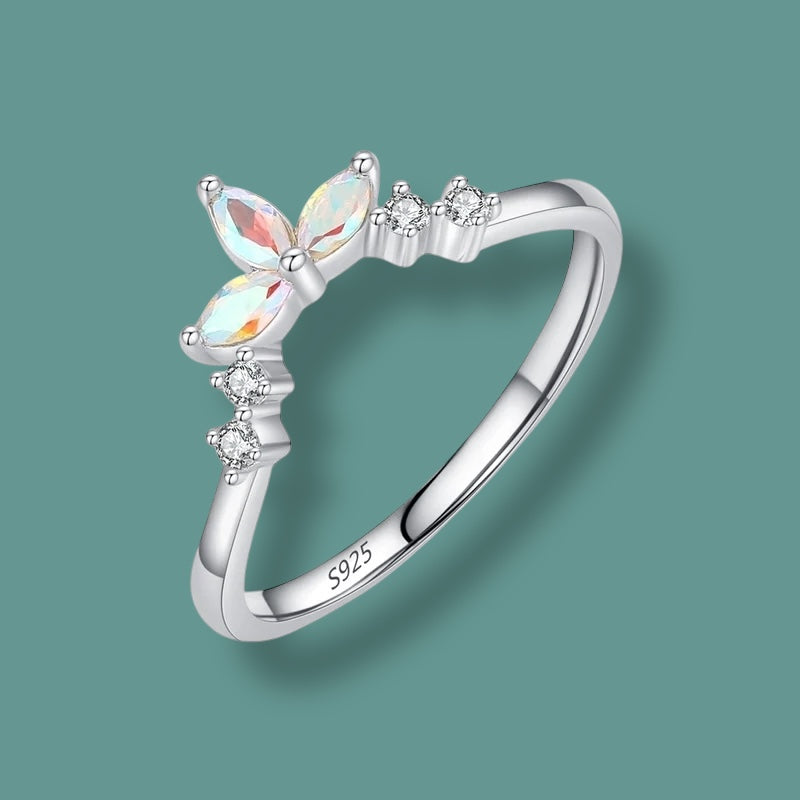 Szivárványos fényű, áttetsző pillangókövekkel és apró kristályokkal díszítve. Finom, álomszerű megjelenést nyújt – tökéletes tavaszi, nyári vagy romantikus hangulathoz.