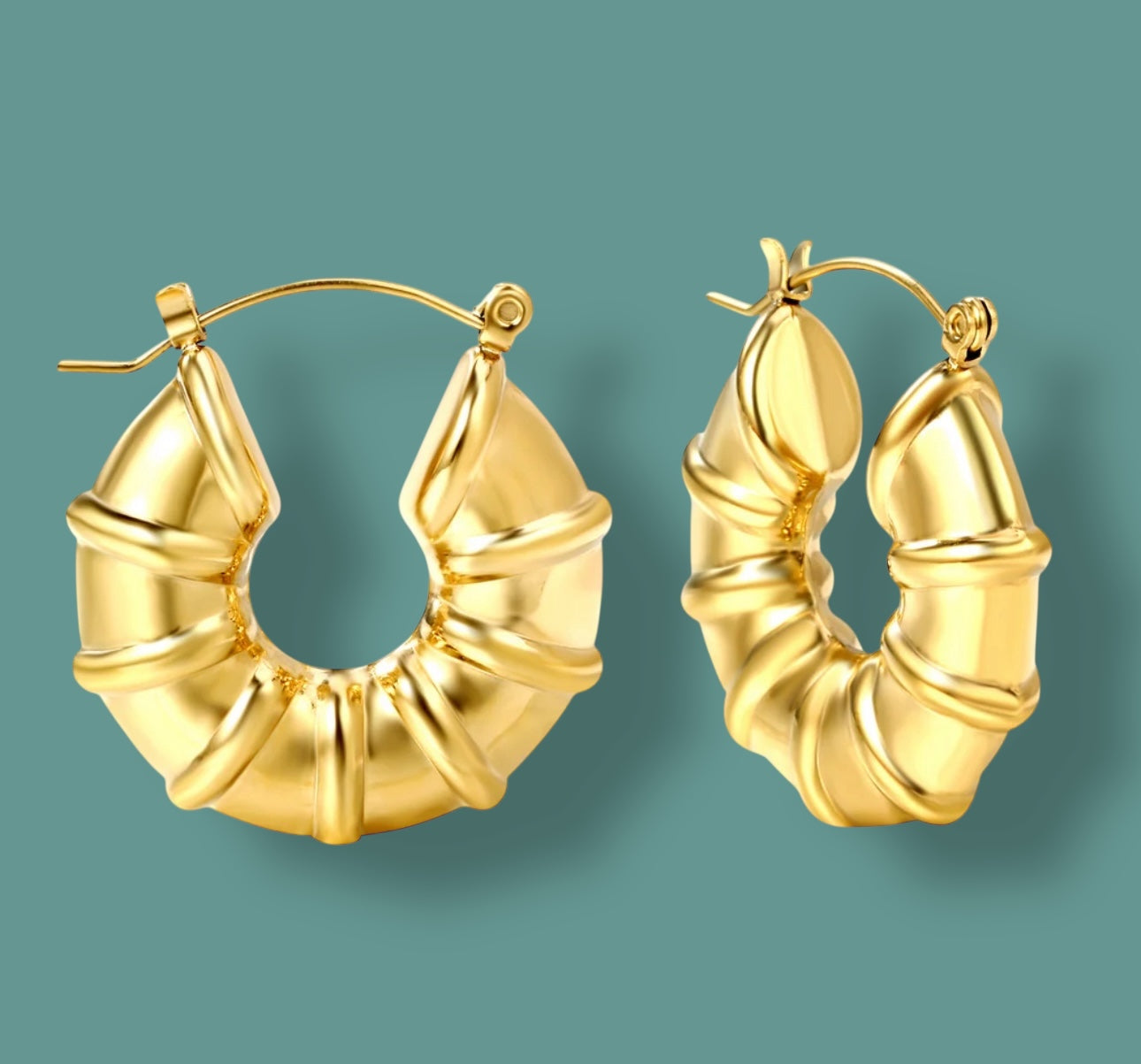 Lángoló elegancia és merész stílus egyetlen ékszerben. Ezek az aranyszínű karika fülbevalók a tűz erejét és szenvedélyét szimbolizálják, ragyogó fényükkel minden tekintetet magukra vonzanak.