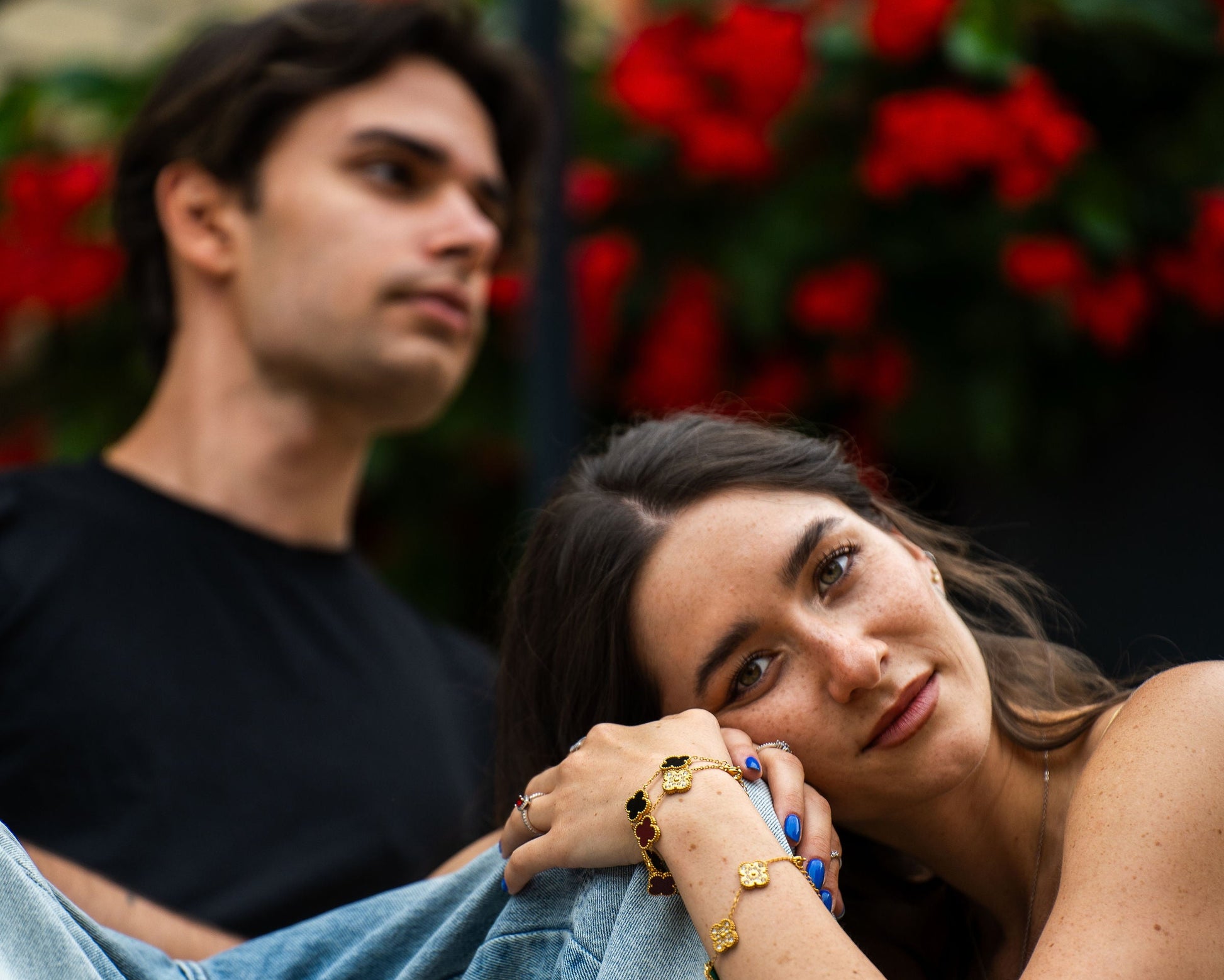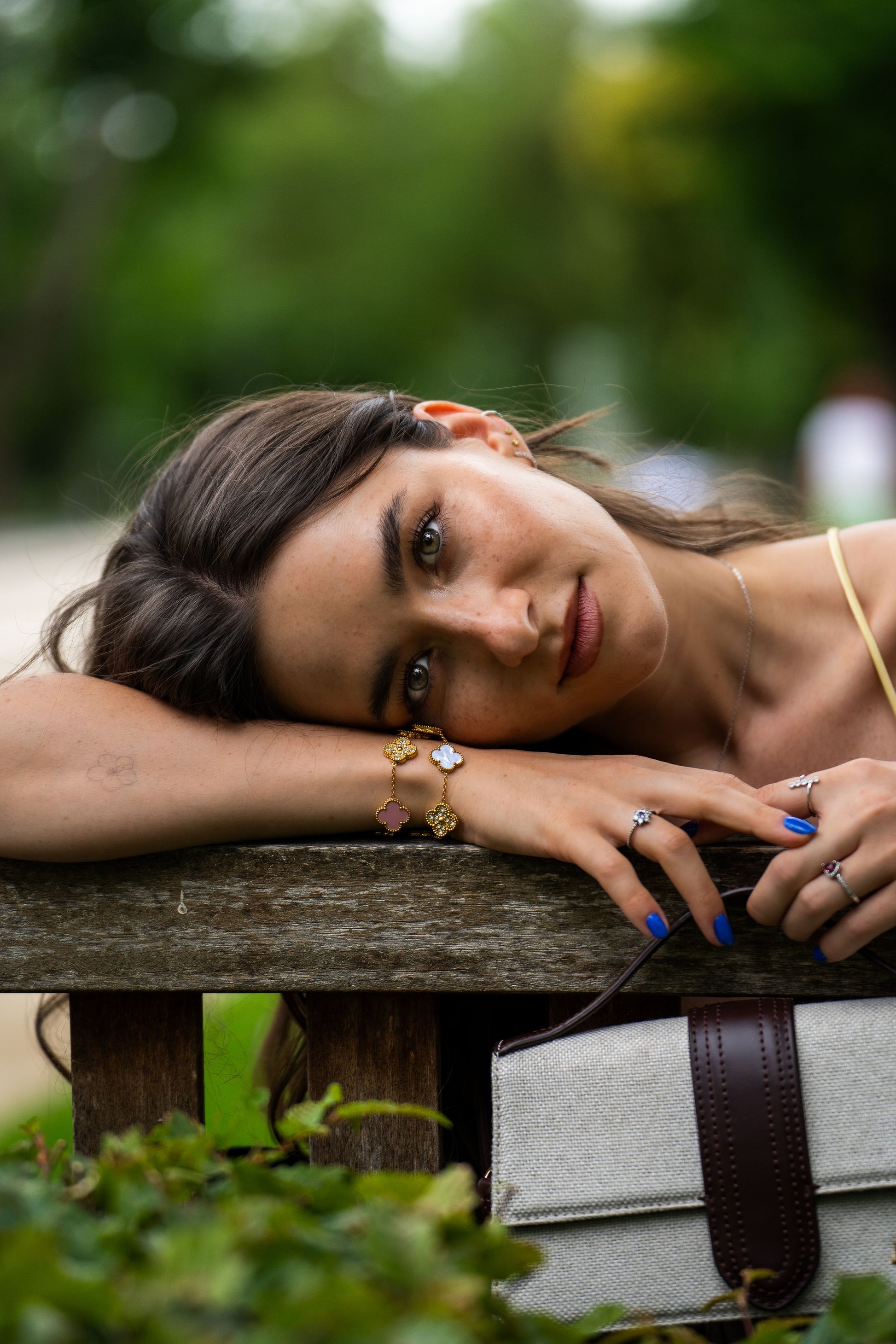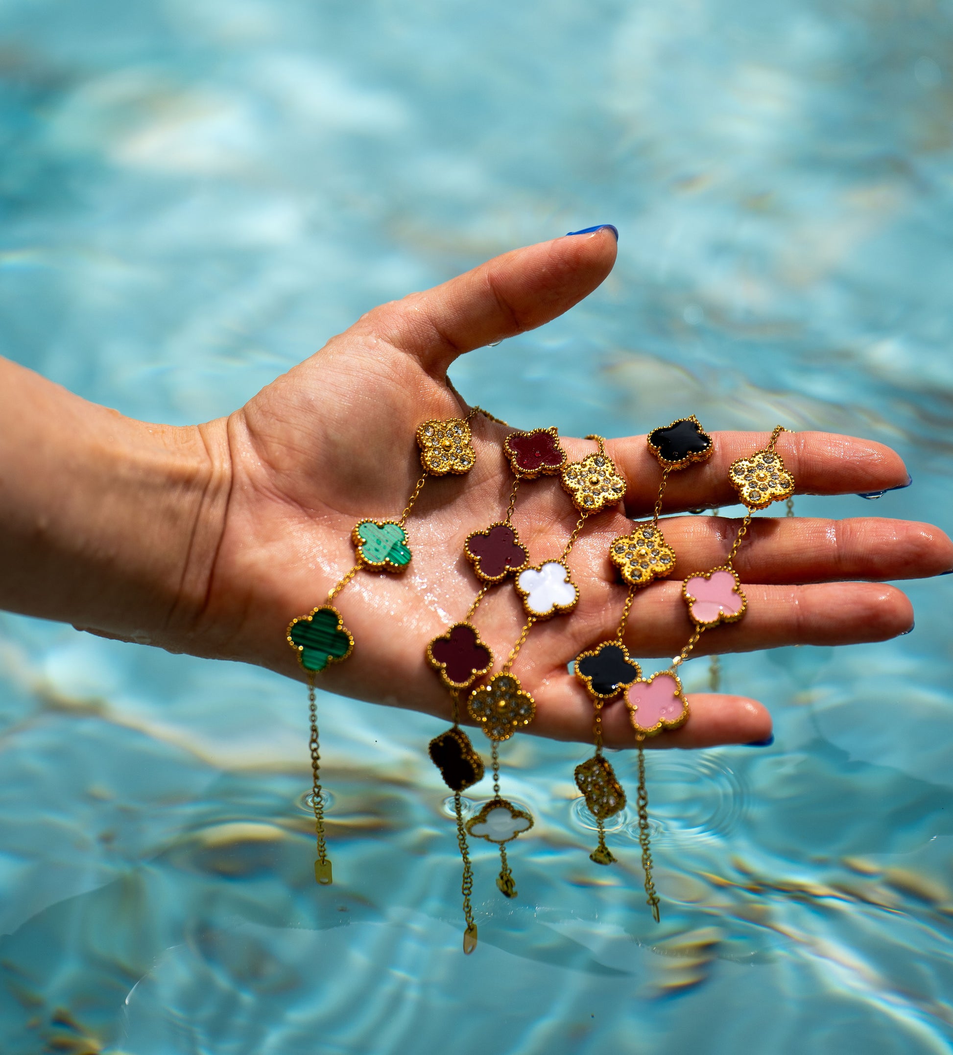 Egy karkötő, két stílus – te döntöd el, ma melyik oldalad mutatod. A finoman kidolgozott négylevelű lóherék egyik fele színes és elegáns (pl. fehér, burgundy vagy fekete), a másik oldala pedig arany tónusú, apró kövekkel kirakva – egy kis csillogás minden mozdulatban.